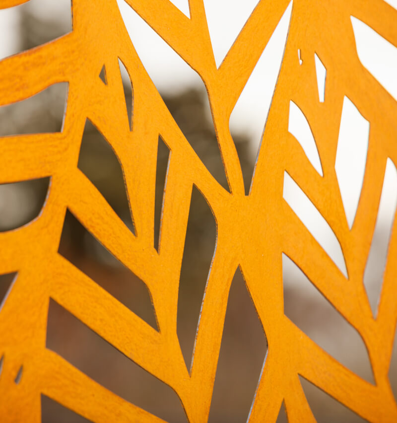 Our metal privacy screens offer a combination of functionality and aesthetics. Available in Corten steel or powder-coated anthracite, you'll find the perfect solution to complement your garden design. Choose from modern patterns, exotic leaf shapes, or classic ornaments to create a private oasis. A metal privacy screen is characterized by its durability and resilience. Thanks to its robust material properties, it easily withstands weather conditions such as rain, snow, and UV rays. Opt for the timeless elegance of anthracite or the unique rusted look of Corten steel, which adds a distinctive touch. Both options are suitable for continuous privacy screens as well as for subtle additions among shrubs and hedges, softening the overall look. For more information about our options, take a look at our metal privacy screen elements in anthracite or discover the Corten steel privacy screen, which impresses with its natural rust patina. A metal privacy screen is not only suitable as a classic privacy screen, but also as a decorative partition for various areas – for example, to separate patios or as a stylish room divider. Custom designs and special colours are available in made-to-measure versions through our individual manufacturing at eleo-fence.co.uk.
