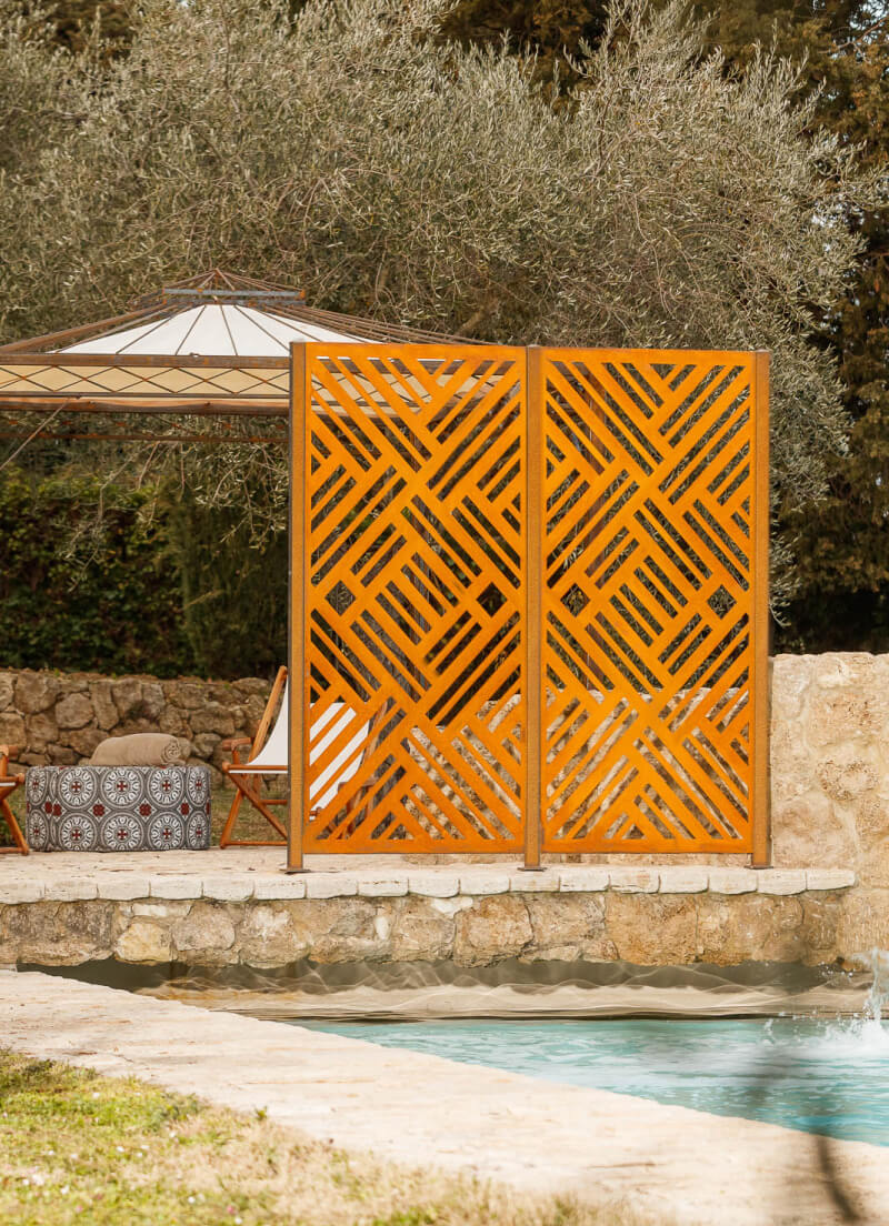 With a rusted steel privacy screen, you'll be right on trend. It's made of weatherproof structural steel but doesn't require a coating – simply select Corten steel as the material during the ordering process if you want a privacy screen with a rusted look. Over time, it will develop a very attractive rust patina.