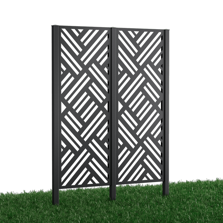 Our "Adda" complete privacy fence set features a striking, all-over geometric pattern. Choose between powder-coated metal (duplex process) or Corten steel. The privacy screen panels measure 158 x 60 cm each.