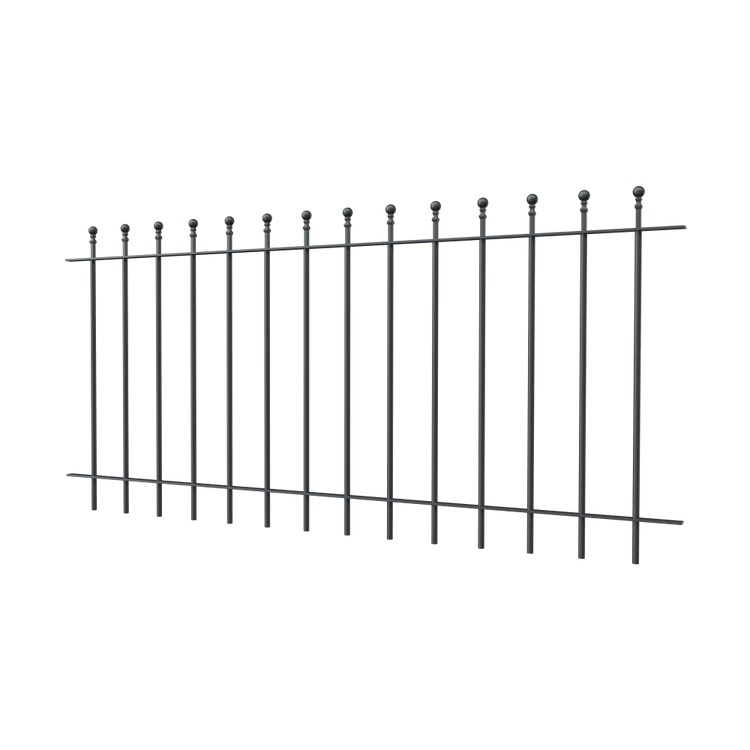 Classic elegance with beautifully designed details: Our "Ancona" fence blends harmoniously into any garden. The spherical finials are a real eye-catcher. The "Ancona" metal fence is handcrafted from solid, weather-resistant wrought iron. The standard width of each fence panel is 192.5 cm, and the height, including the finials, is 90 cm.