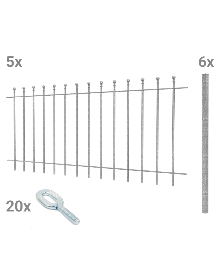 The "Ancona" fence is a real eye-catcher with its spherical finials. "Ancona" has a standard width of 192.5 cm and a height of 90 cm. This high-quality fence is handcrafted from solid, weather-resistant wrought iron.
