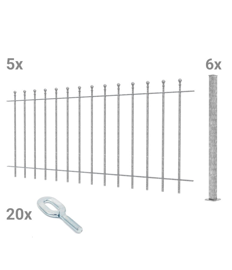 The "Ancona" fence is a real eye-catcher with its spherical finials. "Ancona" has a standard width of 192.5 cm and a height of 90 cm. This high-quality fence is handcrafted from solid, weather-resistant wrought iron.