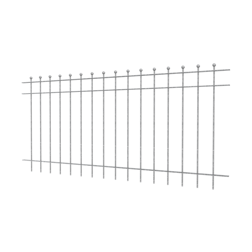 Timeless design with elegant ball finials: Our "Como" fence model is a classic that impresses with its simple yet appealing look. The eye-catching ball finials are a real highlight. The "Como" metal fence boasts high quality – hand-forged from sturdy iron, it easily withstands the elements for years. Each fence panel has a standard width of 192.5 cm and a standard height of 90 cm. Each fence panel has a total of 16 bars, each with a diameter of 1 cm. Three horizontal crossbars ensure reliable stability. The ball finials are each 5 cm in diameter. You can purchase the "Como" fence panel directly from us as the original manufacturer. We prioritize the highest quality, design standards, and customer satisfaction.