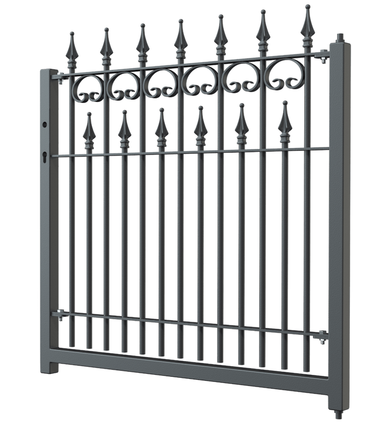Our "Lugano" garden gate is elegantly and intricately designed, making it the perfect complement to our fence system. Beautifully shaped decorative elements and finials in the form of spherical fleur-de-lis accentuate the classic, romantic design. Choose your own finish to give your garden gate a personal touch!
