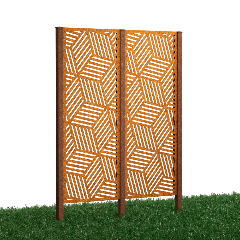 Our "Reno" complete privacy fence set features a modern, all-over diamond pattern that adds a stylish touch to your garden. Choose between powder-coated metal (duplex process) or Corten steel. The privacy screen panels measure 158 x 60 cm each.