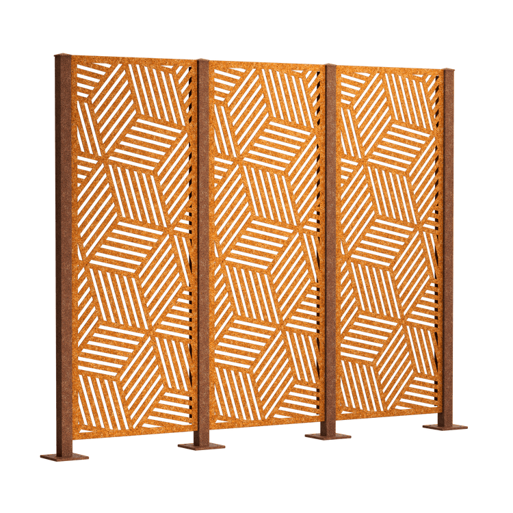 Our "Reno" complete privacy fence set features a modern, all-over diamond pattern that adds a stylish touch to your garden. Choose between powder-coated metal (duplex process) or Corten steel. The privacy screen panels measure 158 x 60 cm each.