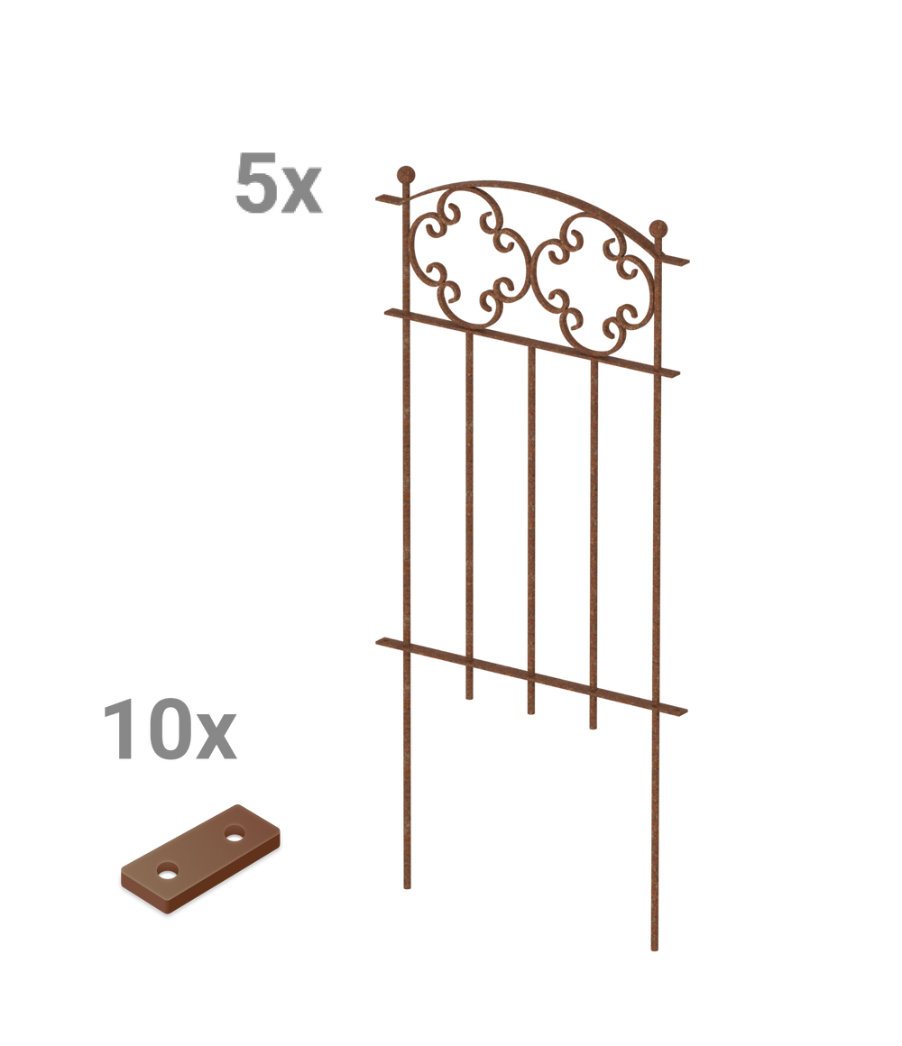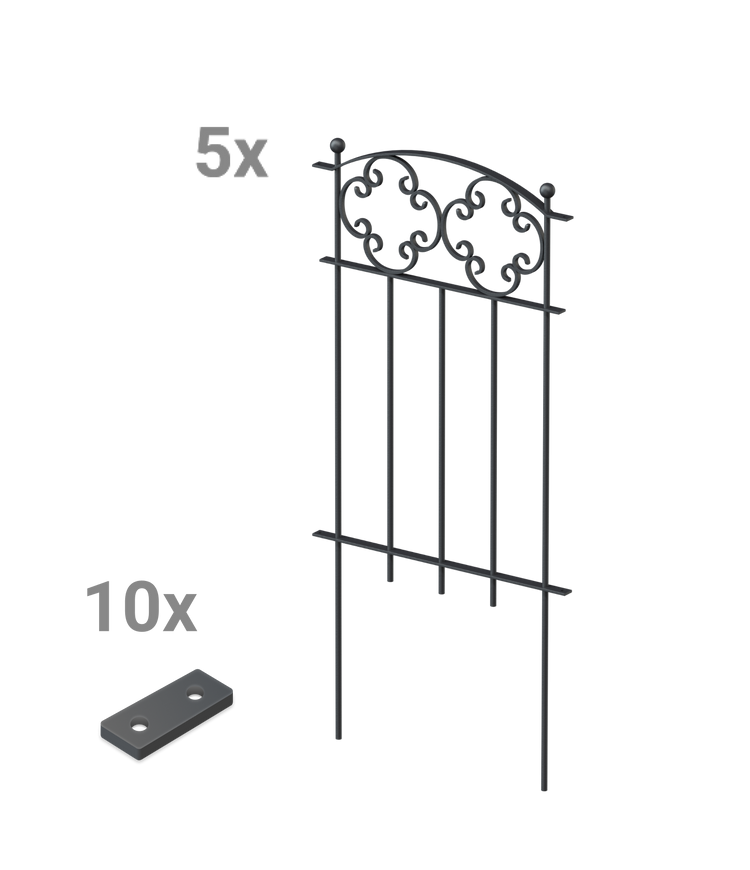Our "Pink" modular fence impresses with its delicate C-shaped decorative elements, which combine to create an attractive floral design and lend your garden a romantic atmosphere. Our practical, budget-friendly set includes five fence panels – each 50 cm wide and 105 cm high, including ground anchors. The individual panels can be quickly and securely inserted into the ground and easily screwed together using the included connecting plates. This creates a decorative and functional boundary for your garden in no time.
