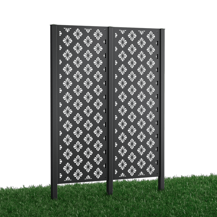 Our "Roya" complete privacy fence set impresses with its elaborate, all-over floral design. Choose between powder-coated metal (duplex process) or Corten steel. The privacy screen panels measure 158 x 60 cm each.